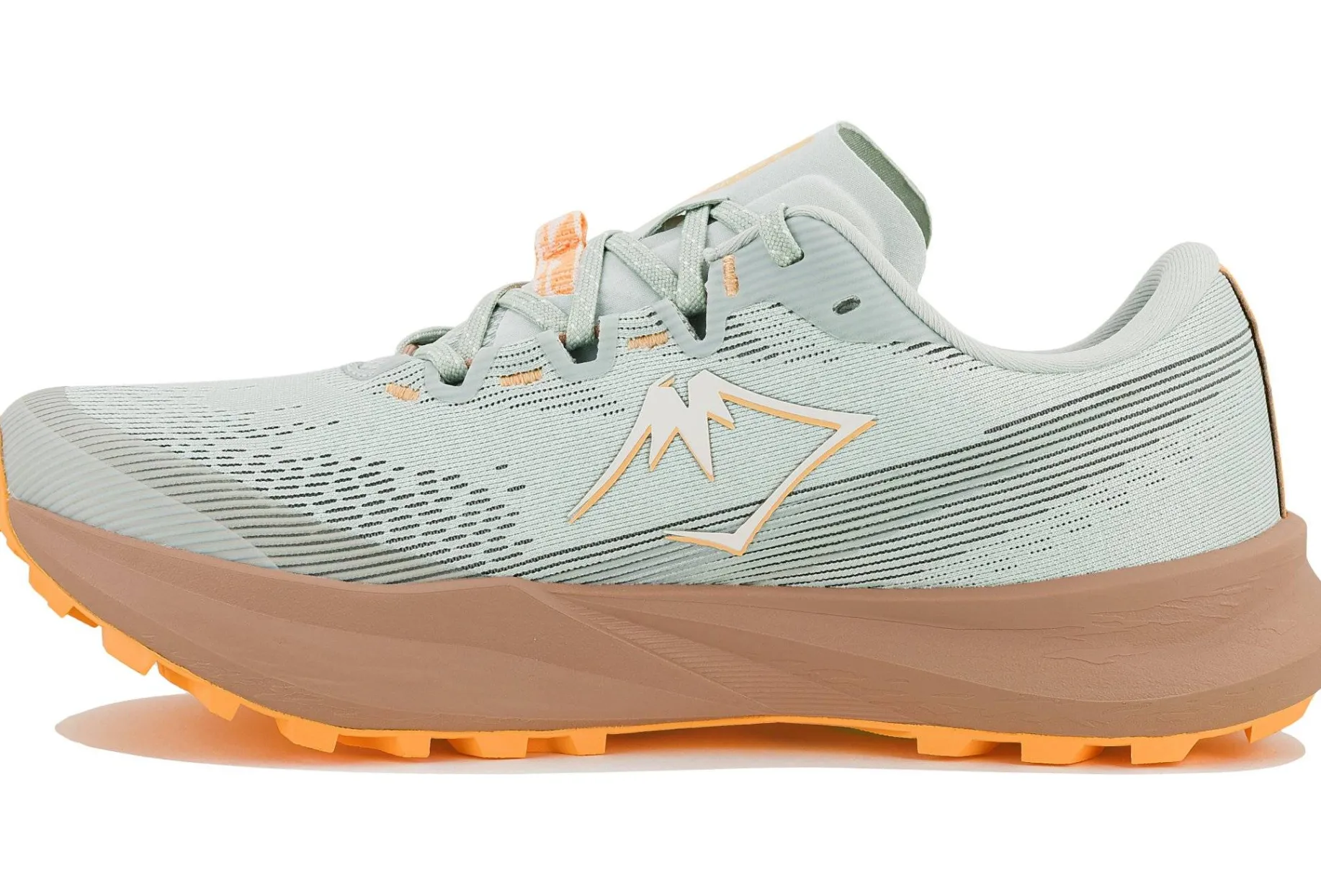 - Empeigne (partie supérieure qui enveloppe votre pied) : le mesh multi-directionnel vous assure un maintien supérieur dans les zones sensibles du pied pour évoluer sereinement sur les chemins rocailleux. Respirant et léger, il vous offre une bonne circulation de l’air lors de vos efforts.