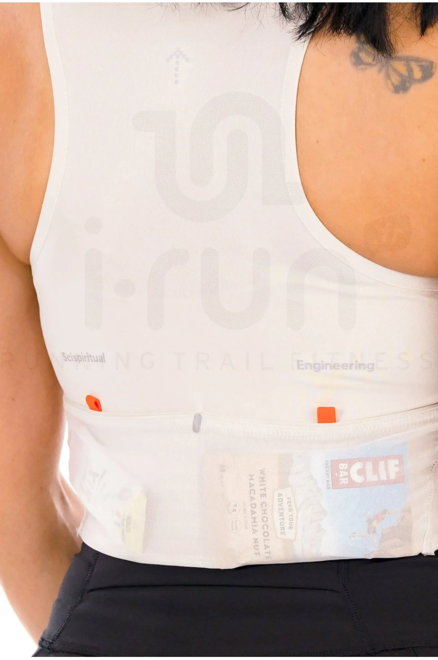 Des rangements au dos sont prévus pour vos ravitaillements et des éléments réfléchissants améliorent la visibilité.