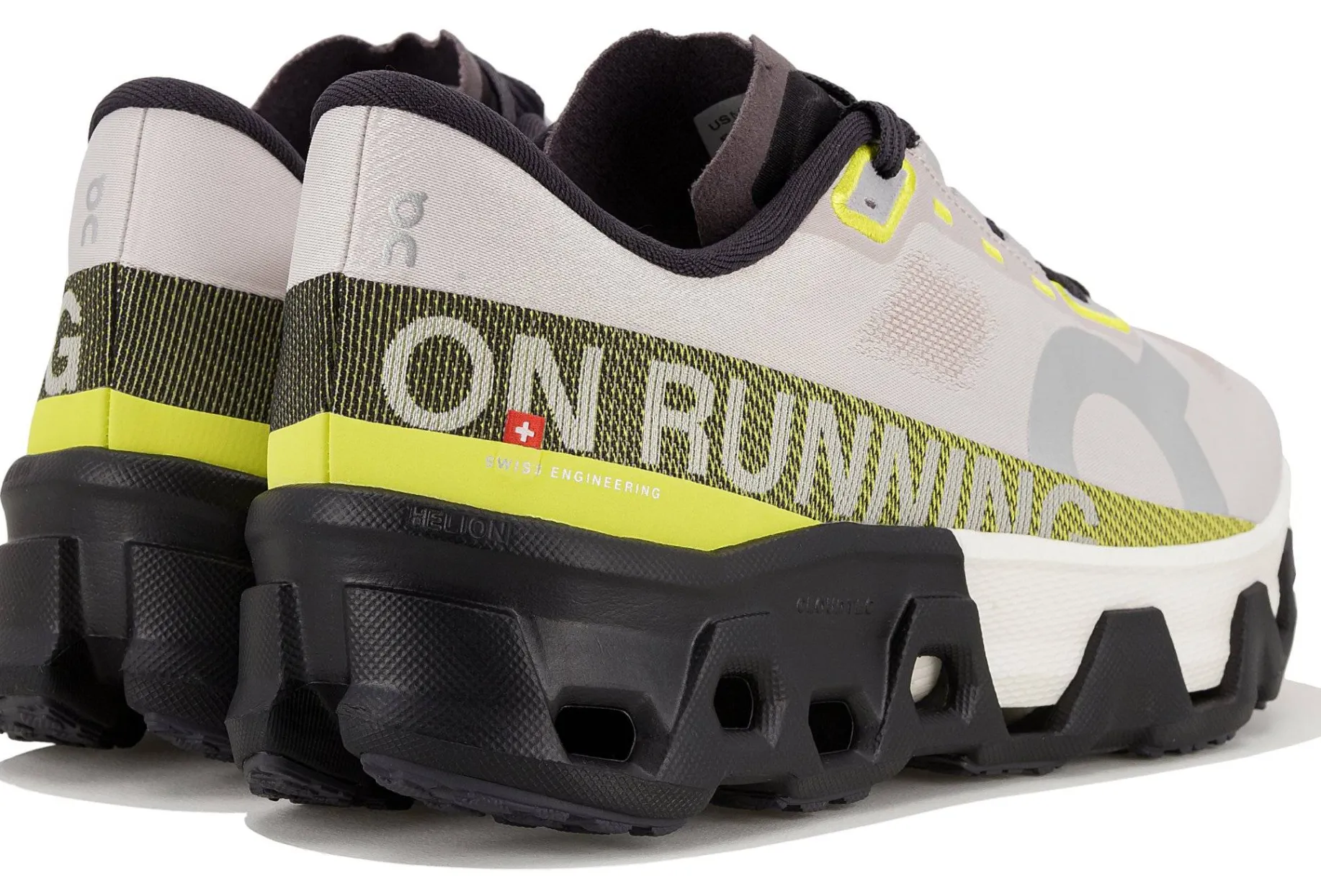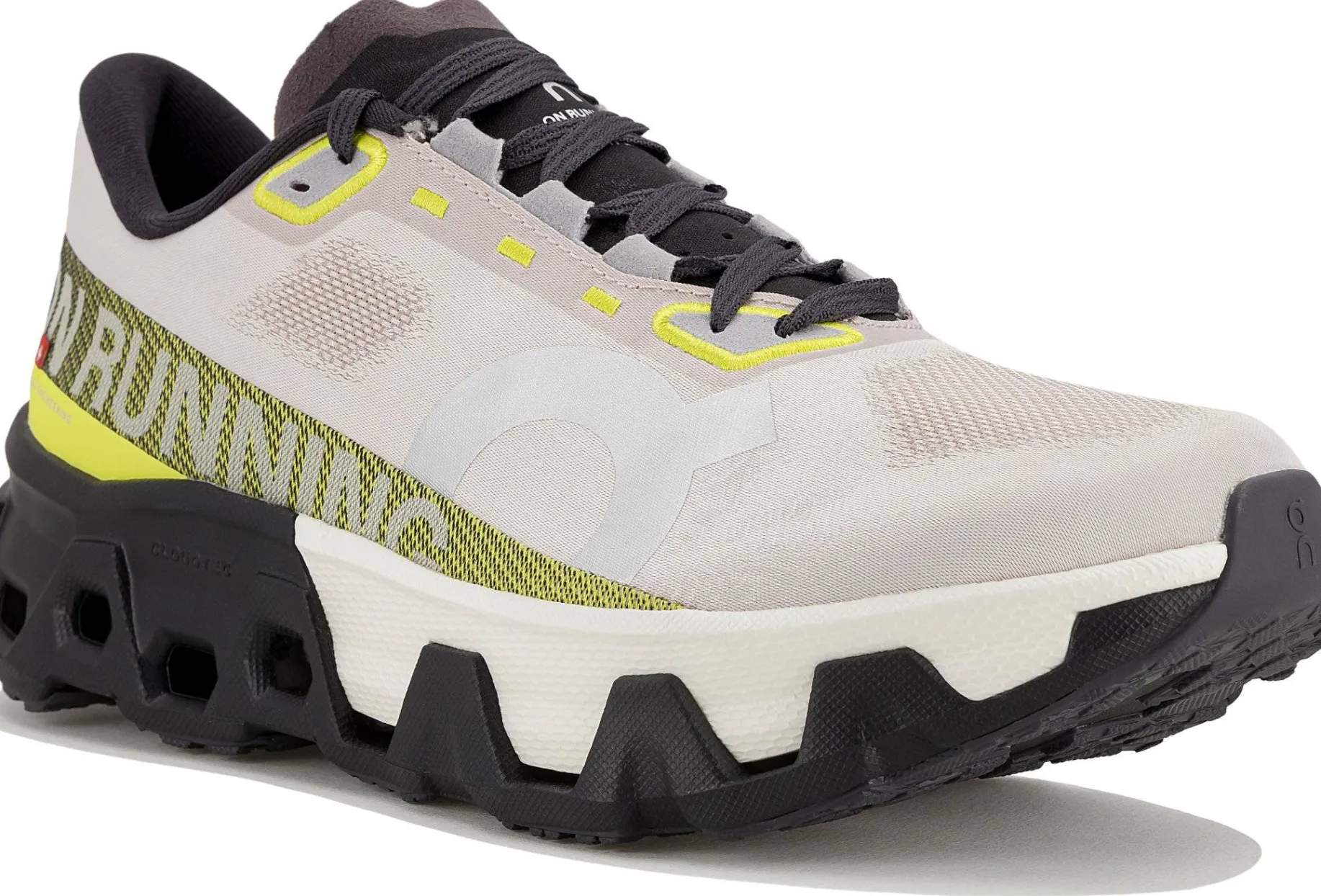 - Empeigne (partie supérieure qui enveloppe le pied) : inspirée du modèle le plus compétitif de On, elle facilite la circulation de l’air pour vous offrir une respirabilité indispensable. Elle veille à une stabilité maximale au niveau du talon et se dote de lacets antidérapants pour éviter les désagréments.