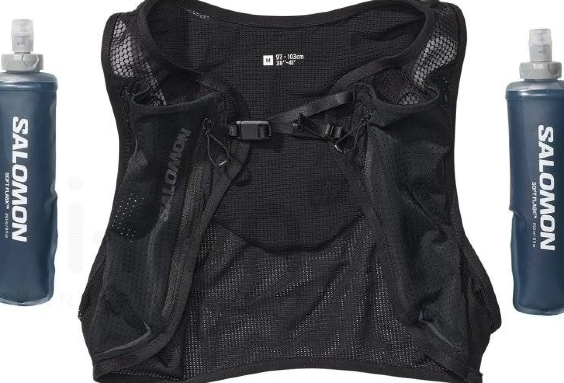 Il propose deux softflasks de 250 ml faciles d’accès afin de vous hydrater durant vos courses. Deux poches zippées à l’avant ainsi que deux rangements au dos vous permettent de transporter vos ravitaillements et effets personnels.