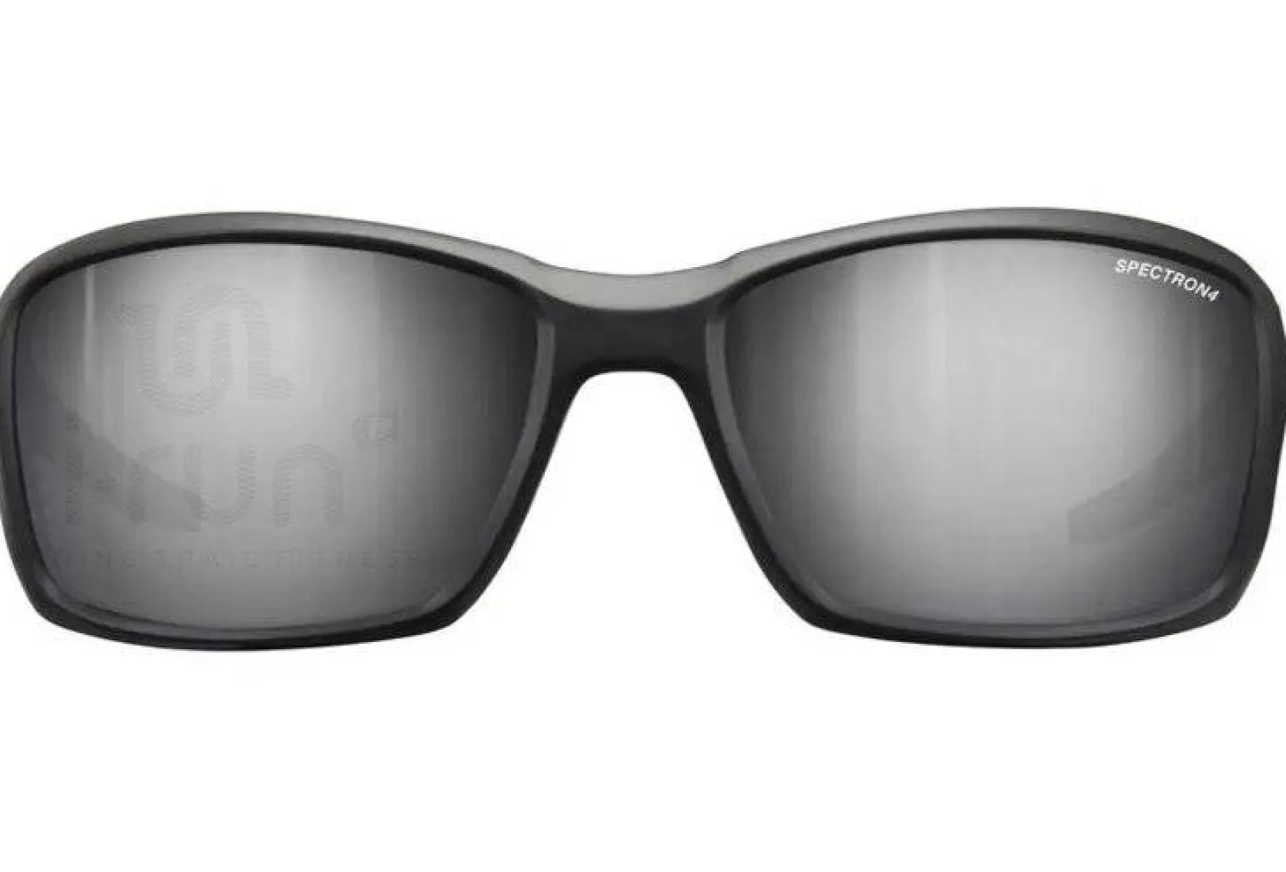 Verre polycarbonate de catégorie 4 (taux de transmission de la lumière visible : 5%) avec un traitement antireflets : il améliore le confort optique en supprimant les reflets parasites. Et un traitement flash : il renforce la filtration de la lumière visible par un effet miroir sur le verre. Il réfléchit les faisceaux lumineux et augmente l’effet filtre. Recommandé pour les sports exposés à une forte réverbération.